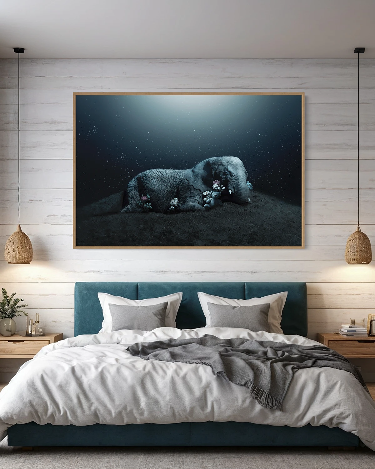 - Une affiche d’art grand format peut être la pièce maîtresse d’un salon ou d’une salle à manger et donner à elle seule l’atmosphère de la pièce. Cet élément tendance permet alors d’unifier la décoration et les objets composant la pièce, en termes de couleurs ou de thèmes. Par exemple, des tons chauds rendent l’espace accueillant et confortable alors que des teintes plus froides apportent une dimension de calme et de sérénité.