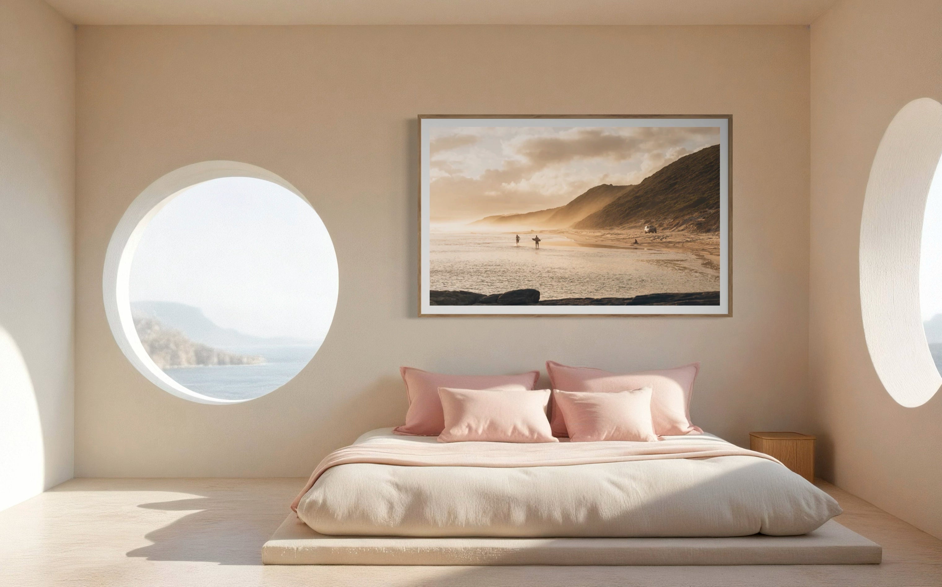 - Dans une chambre, préférez un tirage sur papier d’art avec un encadrement naturel en bois pour un rendu plus doux.