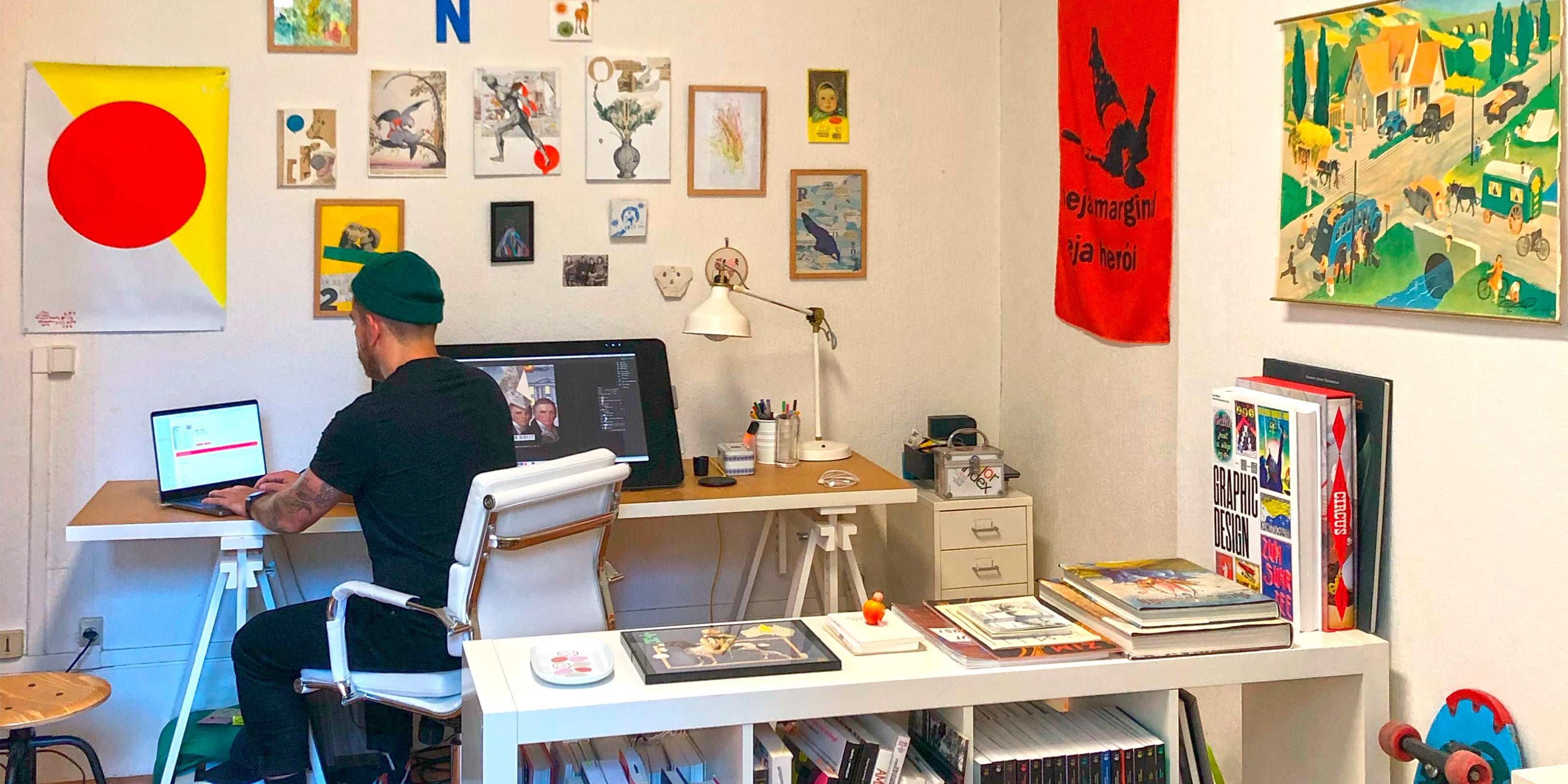 Inspiré par sa propre collection de livres, magazines, cartes postales et lettres anciennes, il a créé une grande quantité d’œuvres au fil des années, en utilisant différentes techniques comme le collage et la peinture numérique. Toutes ses illustrations et affiches partagent un certain flair nostalgique et une grande passion pour le surréalisme.