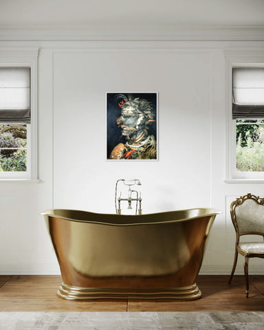 Découvrez L’Eau, une œuvre emblématique de Giuseppe Arcimboldo. Ce tableau fascinant représente un visage formé exclusivement de créatures et éléments liés à l’eau : poissons, coquillages, coraux et autres animaux marins. Chaque détail révèle l’incroyable virtuosité du peintre maniériste, transformant la nature en un portrait composite unique, alliant précision scientifique et imagination artistique.