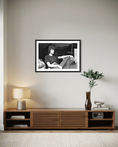 Le regard est profond, presque introspectif. Loin des clichés de scène, ce portrait en noir et blanc révèle un artiste brut, libre, déjà empreint de cette aura singulière qui marquera durablement la chanson française. Signée Claude Delorme, cette image forte joue avec les contrastes et la simplicité de la composition. Le noir et blanc accentue le caractère intemporel de la scène et met en valeur la texture, la lumière et l’attitude de Bashung. Plus qu’une simple photographie, il s’agit ici d’une photo d’art, témoin d’une époque et d’un état d’esprit profondément rock et poétique.