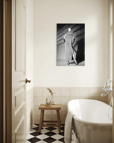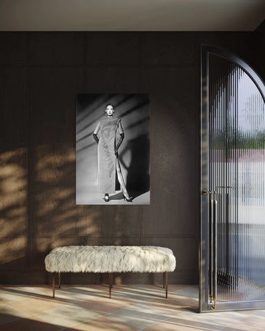 Cette photo noir et blanc s’adresse aux passionnés de haute couture et d'images vintage iconiques. Véritable tableau photographie, elle apporte à votre décoration murale une élégance intemporelle et une signature artistique forte.