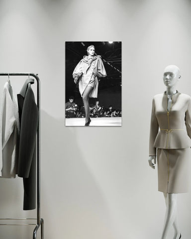 Cette photographie femme noir et blanc est bien plus qu’une image de défilé : c’est une œuvre décorative qui célèbre l’histoire de la mode et apporte caractère, élégance et authenticité à votre intérieur. Parfaite pour une décoration murale sophistiquée et intemporelle.