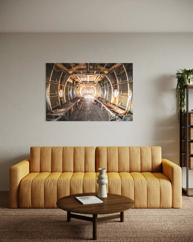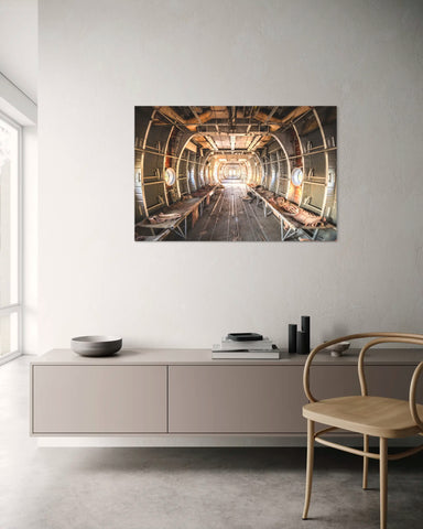 Conseil déco : Cette photo urbex d'une carcasse d'avion abandonné peut se coupler avec d'autres photos d'avions de Mickaël Peralta, Vue intérieure du DC-3 ou la photo d'art Lever du soleil DC-3 pour une déco originale.