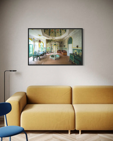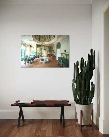 Conseils déco : Acheter cette photo d'art, c'est choisir un tableau photo unique aux inspirations orientales. Installez cette photographie d'art dans un salon ou une salle à manger apportera de la couleur et de la structure à votre intérieur, faisant ainsi revivre l'intérieur inédit de cette villa abandonnée.