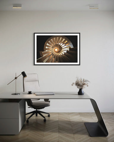 Conseil déco : cette photo urbex touche du doigt le style graphique et architectural et trouvera très bien sa place en grand format dans un salon contemporain. Tous nos formats sont disponibles sur notre configurateur.