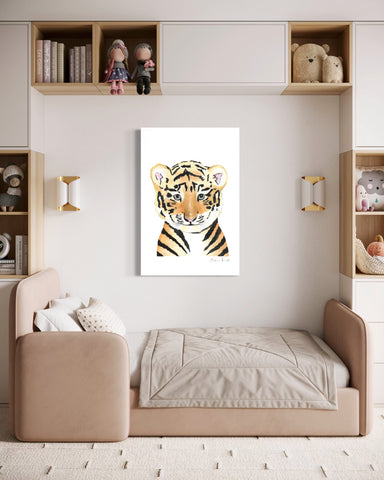 Cette peinture pleine de tendresse et de charme apportera une touche de douceur et de fantaisie à toute chambre d'enfant. Parfait pour éveiller l'imaginaire des tout-petits, ce petit tigre saura rapidement devenir le compagnon déco préféré des jeunes aventuriers et des amoureux des animaux.