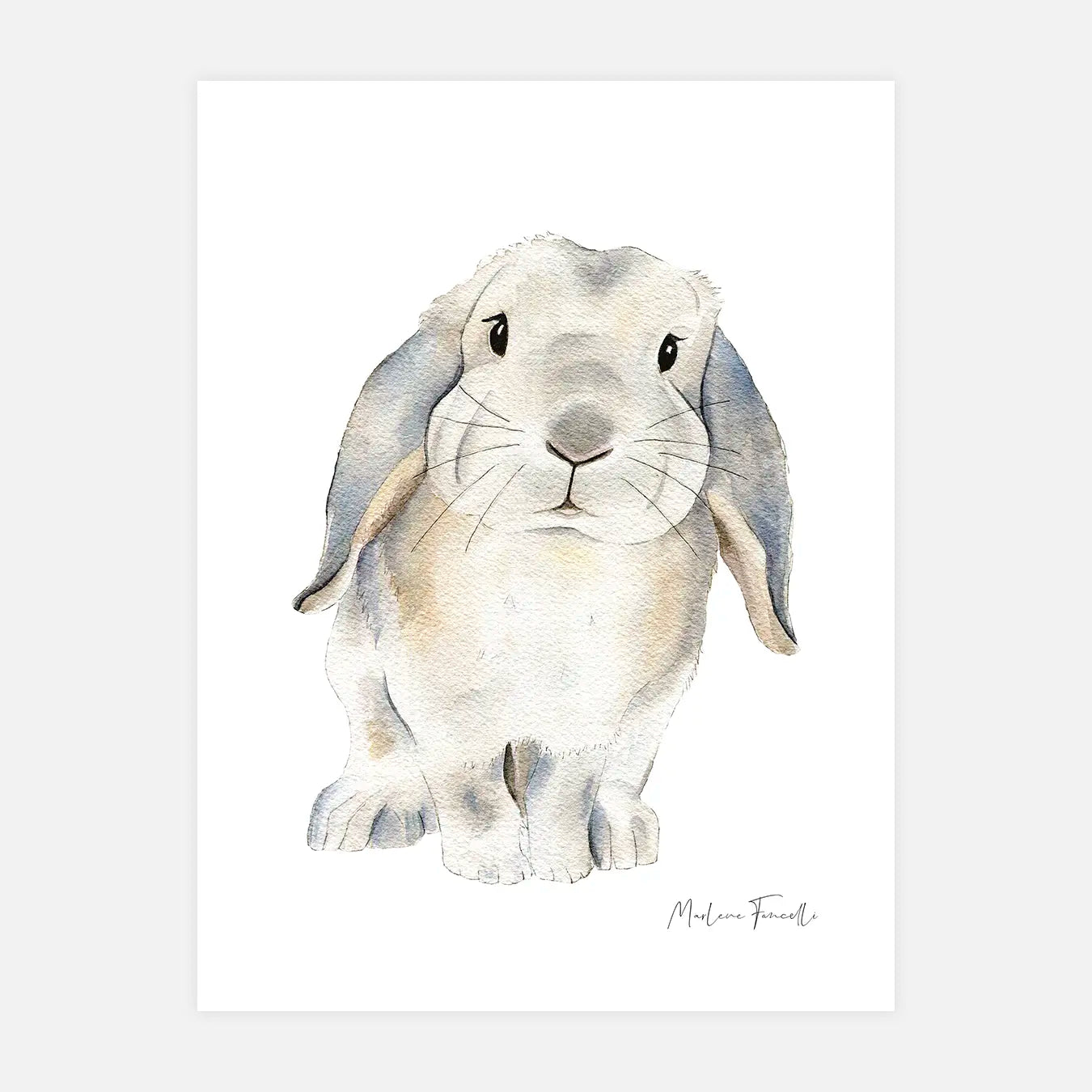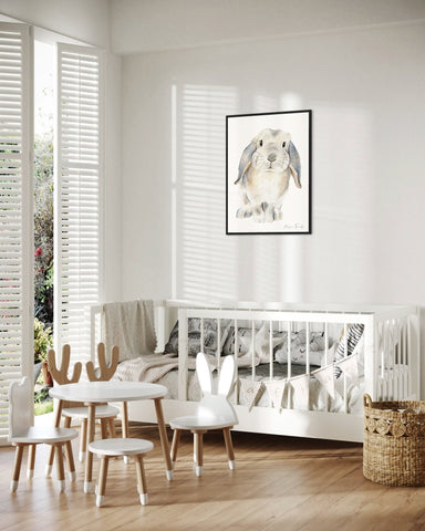 Cette adorable illustration d’un petit lapin à l’aquarelle apporte une touche tendre et apaisante à la décoration de la chambre de votre enfant ou dans une autre pièce de votre intérieur. Cette image d’animaux pleine de douceur est idéale pour créer un univers calme et chaleureux.