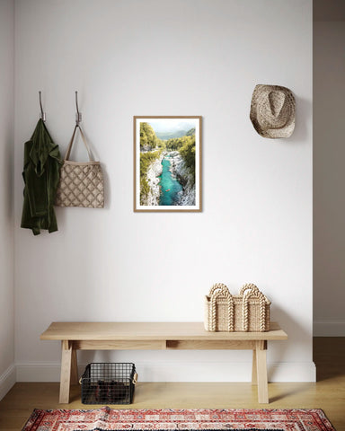 Avouez le, vous aimeriez être dans ce kayak ! Affiche déco de gorges au milieu du Parc National du Triglav en Slovénie pour une déco murale dépaysante et nature assurée !