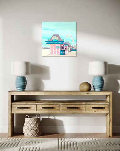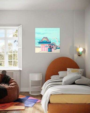 Conseils déco : La photo évoque le style rétro des fêtes foraines et les moments d’enfance au bord de l’eau. Elle se fond donc parfaitement dans un salon lumineux, une chambre d’enfant, un bureau créatif, ou un couloir déco. Complétez avec des objets colorés ou des affiches rétro pour un mur galerie gai et harmonieux. Enfin, le cadre en bois sublime et apporte une finition parfaite à la photo d'art.