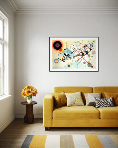 Wassily Kandinsky Composition 8 marque un tournant dans l’histoire de l’art moderne : une œuvre audacieuse, pleine de mouvement, qui stimule l’imaginaire et transforme instantanément l’atmosphère d’un espace.
