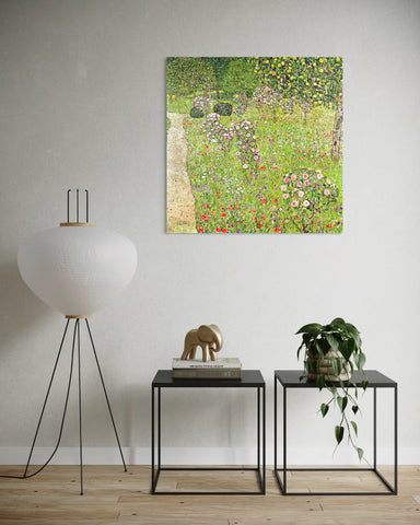La composition dense et rythmée évoque un tapis floral, tandis que les touches picturales rappellent le travail minutieux et décoratif de Klimt. Cette reproduction d’art peinture réalisée dans notre atelier restitue fidèlement la richesse chromatique et la profondeur visuelle de l’œuvre, idéale pour une décoration murale chaleureuse, inspirée de la nature et de la poésie.