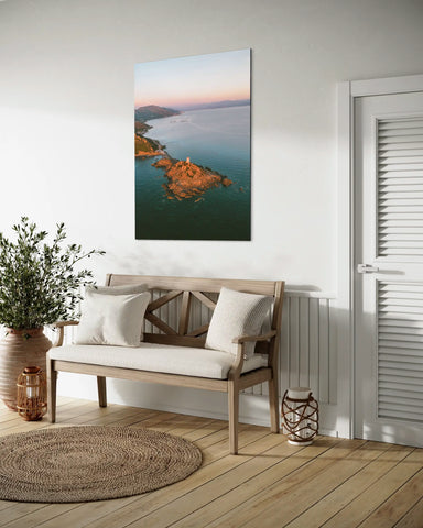 Cette photographie de paysage capture la beauté brute du littoral corse, entre lumière dorée et reliefs escarpés. Parfaite pour les amoureux de l’océan, cette photo de mer évoque la force tranquille des éléments et l’élégance intemporelle de la nature.