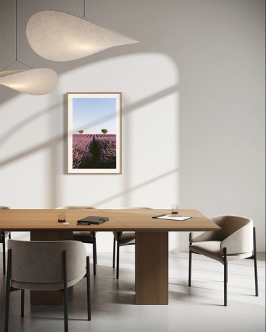 Plongez dans la beauté envoûtante du sud de la France, en Provence, avec cette photo d’art capturée par Quentin Lafon. Prise au cœur de la Provence, cette art photo offre une perspective infinie sur des rangées de lavande aux teintes violettes intenses, s’étendant à perte de vue sous un ciel pur.