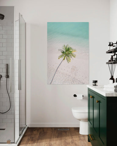 Complétez cette photo d'art avec d'autres photos imprimées de palmiers ou images de plage pour une déco murale apaisante et calme.