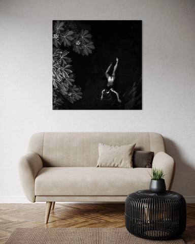 Comme un goût de liberté que de se livrer à la nature et de nager nu dans la rivière. Photographie de nu prise par Julien Lasota dans un environnement qui rappelle la jungle.