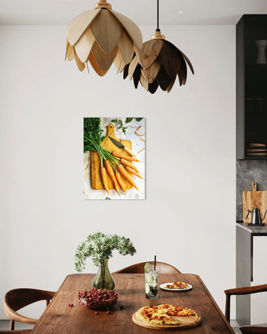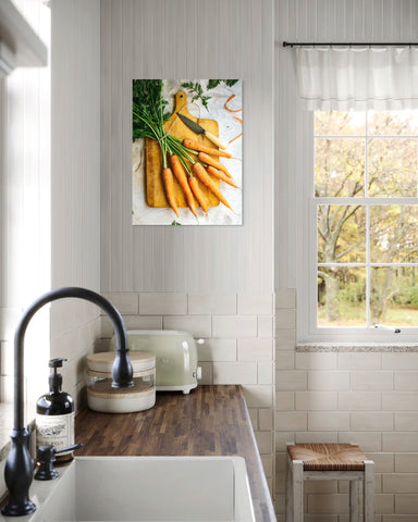 Une botte de carottes fraîches, capturée dans une photo d’art au style vintage, qui met en valeur la simplicité et l’authenticité des produits naturels. L’image célèbre les saveurs et la beauté des légumes, transformant un geste quotidien de la cuisine en un détail décoratif chaleureux et inspirant. Elle séduira autant les amoureux d’art culinaire que ceux qui recherchent une photo cuisine authentique.