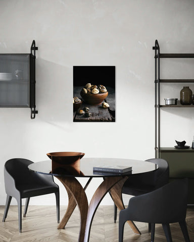 Cette photographie d’art met en valeur des palourdes et praires fraîchement rapportées de la criée, capturées avec précision pour révéler leurs nuances naturelles et leurs motifs marbrés uniques. La composition évoque l’univers marin et la fraîcheur du littoral, avec une esthétique légèrement vintage qui renforce l’authenticité de la scène. Ce visuel s’inscrit parfaitement dans l’univers des images de mer et des natures mortes marines, idéal pour créer une ambiance iodée et élégante.