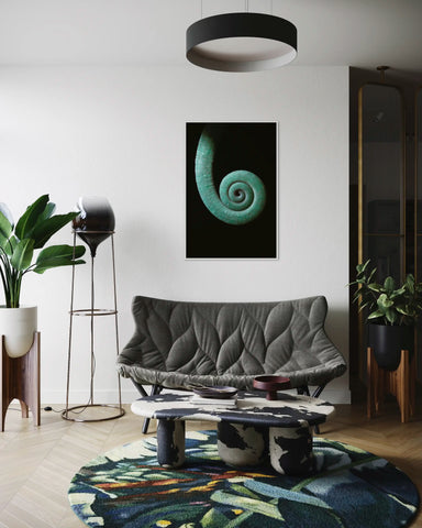 Cette œuvre n’est pas qu’une simple capture animalière : elle devient un véritable tableau photographie, mettant en lumière la beauté singulière de ce reptile fascinant. La précision des détails et le jeu de couleurs sur sa queue traduisent toute la richesse de la faune sauvage.