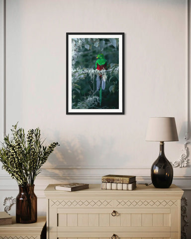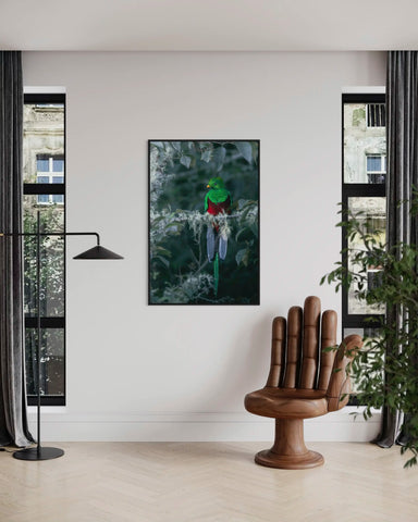 Cette œuvre rare ne se limite pas à une simple photo animal. Elle est une véritable photo d’art, capturant la beauté mystique d’un oiseau sacré. Ses plumes aux reflets vert émeraude et rouge flamboyant traduisent l’essence même de la nature tropicale. Le quetzal, symbole de liberté et de vitalité, devient ici une icône intemporelle.
