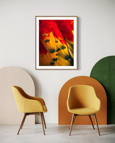Idéale pour une décoration d'intérieur, cette oeuvre apporte énergie et exotisme à votre espace. Dans un salon moderne, elle devient le point focal qui attire le regard. Dans un bureau, elle stimule la créativité grâce à ces contrastes puissants. Associée à des matières naturelles comme le bois ou le rotin, elle souligne l'harmonie entre nature et design.