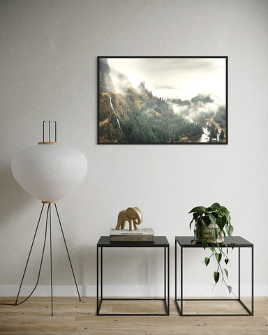 Quand la brume nous laisse penser que la nature respire. Un paysage mêlant forêt, cascade et petit village
