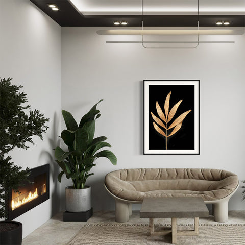 Sur un fond noir profond, un feuillage délicat pris en photo par l'artiste Zoé Pignolet. On peut admirer la finesse et la poésie de ses broderies. Une affiche parfaite pour une déco chic et raffinée.