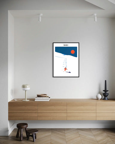 Cette illustration graphique fait partie de la collection « lignes sportives » qui vous propose une série d’affiches modernes et épurées autour du sport. Fan de ski, de montagne et de sport d'hiver, cette affiche est faite pour vous. Que ce soit pour la décoration de votre chambre, de votre salon ou d'une cuisine dans un chalet en montagne, l'affiche Ski est idéale