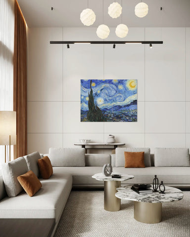 Chez Artenza, nous proposons cette reproduction fidèle imprimée sur différents supports pour mettre en valeur tous les détails et la profondeur de l’original : papier d’art, aluminium ou plexiglas. Chaque reproduction transforme votre intérieur en une véritable galerie d’art, permettant aux amateurs de Nuit étoilée Van Gogh de profiter d’une pièce unique, qu’il s’agisse d’un salon, d’un bureau ou d’un espace contemporain.