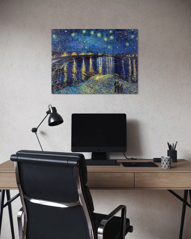 Apportez une touche d'élégance et de poésie à votre décoration intérieure avec cette reproduction fidèle de "Nuit étoilée sur le Rhône", chef-d'œuvre intemporel de Vincent Van Gogh, peint en 1888 à Arles. Ce tableau peinture emblématique, aux teintes profondes et au mouvement vibrant, capture la magie d’un ciel étoilé se reflétant sur le fleuve, dans une atmosphère nocturne apaisante.